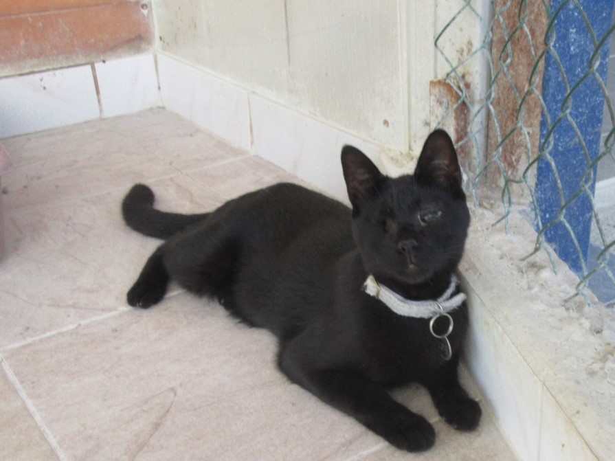 Meg wears collar 174 & she is a totally blind black cat who resides in Ashcroft square at the sanctuary. She came to the sanctuary in 2019 when her owner sadly died. She is a lovely little cat & is very confident in Ashcroft Square she has settled really well but would be much better in a home.
