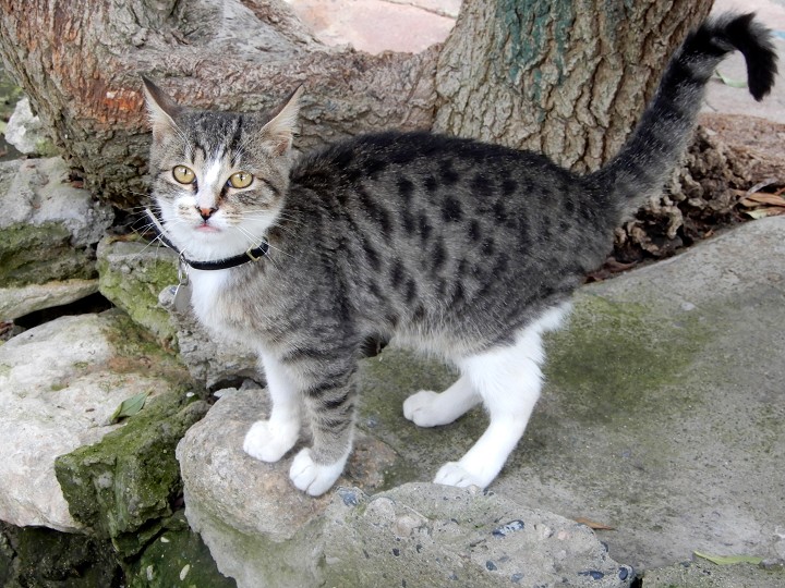 Elliott wears collar 130 & is a handsome tabby & white cat. he came to the sanctuary in November 2022. We think he was born in May 2022. He is quite a feral boy, but in time could become your friend. He has been neutered.