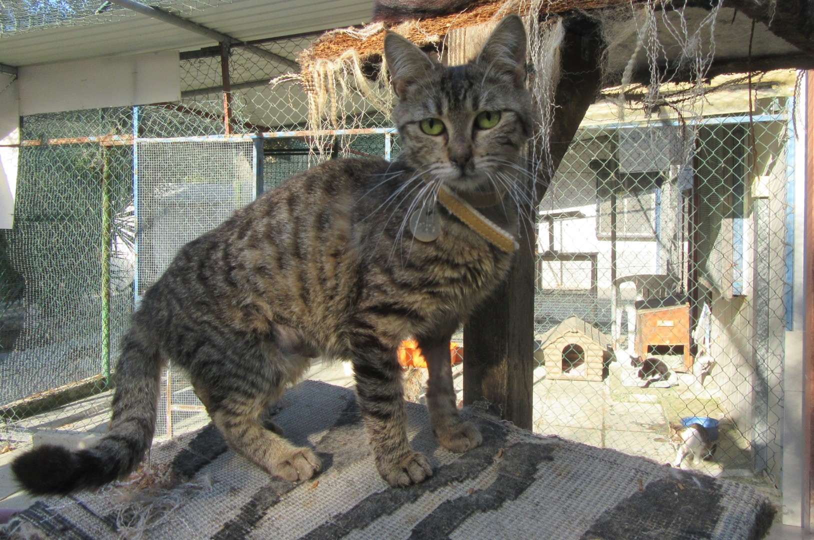 Fiona wears collar number 239 & is a tabby cat. She came to the sanctuary in May 2025 & we think she was born in April 2024. She is friendly & has been spayed & would love a forever home.